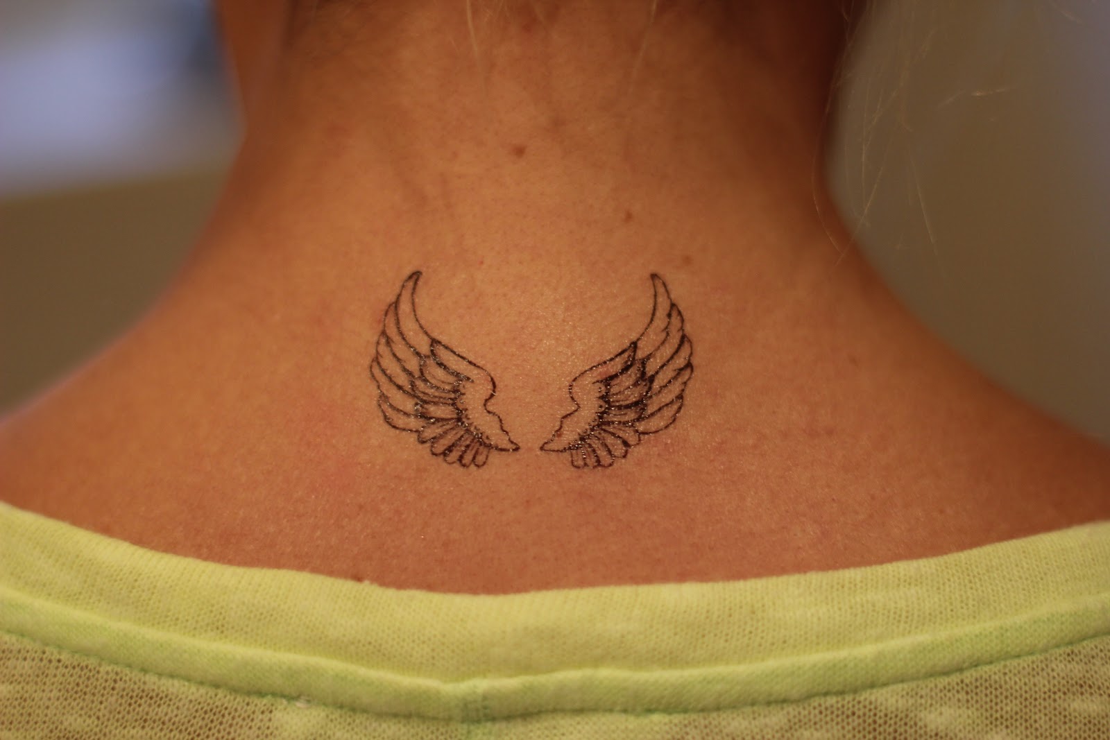 One of Justin Bieber’s latest and favorite tattoos, is his angel wings tattoo (the one without Selena Gomez as the angel). This one (contrary to the one on his wrist), is of angel wings that are on the back of his neck.